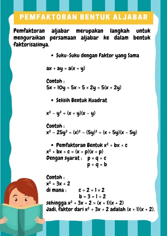 Pemfaktoran aljabar merupakan langkah untuk