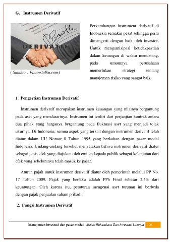 ukurnya. Di Indonesia, semua aspek yang terkait dengan instrumen derivatif telah