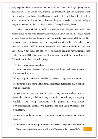 investasi. Apabila BNI securities menerbitkan reksadana maka bank custodian