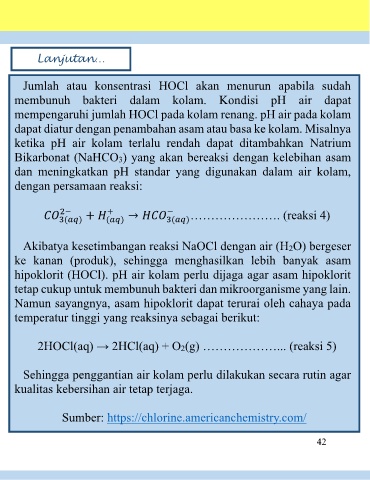 hipoklorit (HOCl). pH air kolam perlu dijaga agar asam hipoklorit