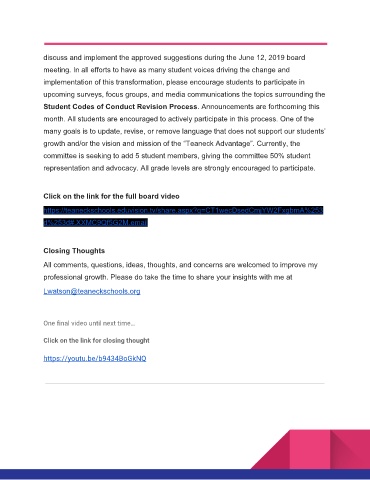 discuss and implement the approved suggestions during the June 12, 2019 board