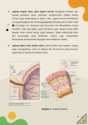 3. Lapisan dalam mata adalah retina. Retina terdiri atas reseptor cahaya