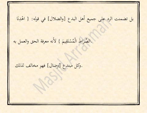 ِ ا ندها { :هلوق يف ]لالضلاو[ عدبلا له ا عيمج ىلع درلا تنمضت لب ْ ِ هب لمعلاو قحلا ةفرعم هنأل } ميق تسمْلا طارصلا. ْ كلذل فلاخم وهف ]لاضو[ عدتبم لكو.