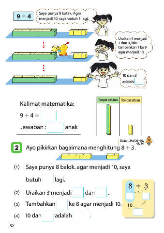 ⑴ Saya punya 8 balok. agar menjadi 10, saya