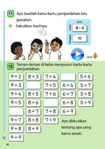 11 Ayo buatlah kartu-kartu penjumlahan lalu