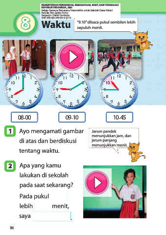 Waktu “9.10” dibaca pukul sembilan lebih