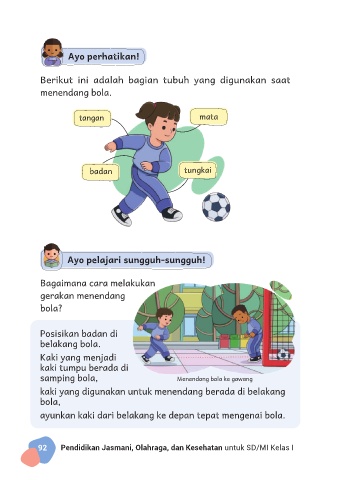 92 Pendidikan Jasmani, Olahraga, dan Kesehatan untuk SD/MI Kelas I