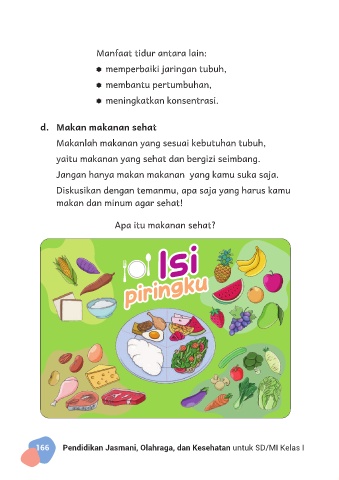 166 Pendidikan Jasmani, Olahraga, dan Kesehatan untuk SD/MI Kelas I