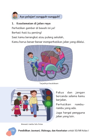 170        Pendidikan Jasmani, Olahraga, dan Kesehatan untuk SD/MI Kelas I