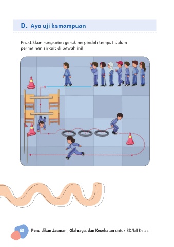 D. Ayo uji kemampuan Praktikkan rangkaian gerak berpindah tempat dalam permainan sirkuit di bawah ini! 68 Pendidikan Jasmani, Olahraga, dan Kesehatan untuk SD/MI Kelas I