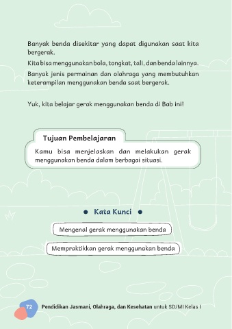 72 Pendidikan Jasmani, Olahraga, dan Kesehatan untuk SD/MI Kelas I