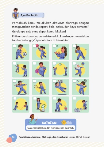 74 Pendidikan Jasmani, Olahraga, dan Kesehatan untuk SD/MI Kelas I