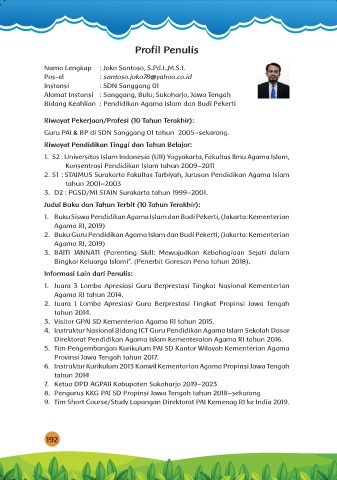 Nama Lengkap : Joko Santoso, S.Pd.I.,M.S.I.