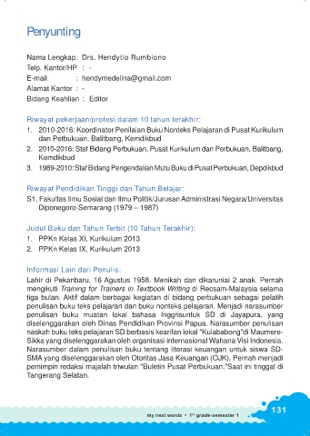 penulisan buku teks pelajaran dan buku nonteks pelajaran. Menjadi narasumber