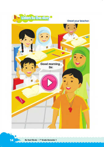 o the st en t y or List Listen to the story o the st List or y Listen to the story en t Greet your teacher. Good morning , Sir. 14 14 unit 1. good morning cici Grade-Semester 1 xt W My Ne or ds • 1 st