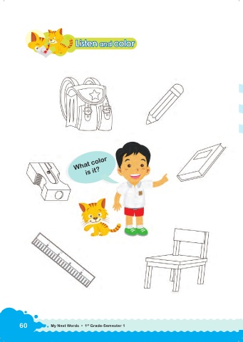 Listen and color List Listen and color color en List en and color and what color What color is it ? is it? 1 23 4 60 My Next Words • 1 Grade-Semester 1 st