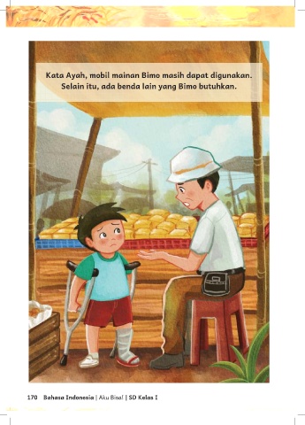 Kata Ayah, mobil mainan Bimo masih dapat digunakan. Selain itu, ada benda lain yang Bimo butuhkan. 170 Bahasa Indonesia | Aku Bisa! | SD Kelas I