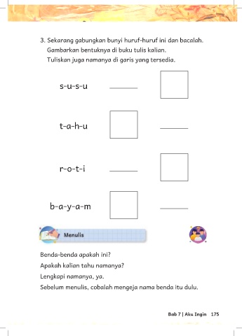 3. Sekarang gabungkan bunyi huruf-huruf ini dan bacalah.