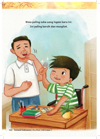 Bimo paling suka uang logam baru ini. Ini paling bersih dan mengilat. 182 Bahasa Indonesia | Aku Bisa! | SD Kelas I