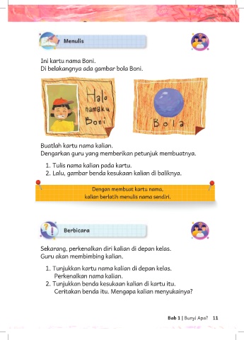 1. Tunjukkan kartu nama kalian di depan kelas.
