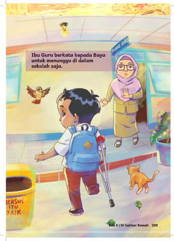 Ibu Guru berkata kepada Bayu untuk menunggu di dalam sekolah saja. Bab 8 | Di Sekitar Rumah 209