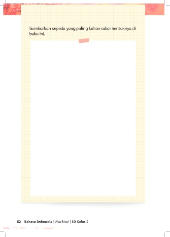 Gambarkan sepeda yang paling kalian sukai bentuknya di buku ini. 52 Bahasa Indonesia | Aku Bisa! | SD Kelas I