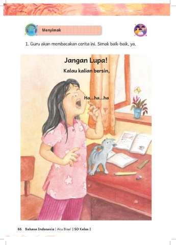 1. Guru akan membacakan cerita ini. Simak baik-baik, ya. Jangan Lupa! Kalau kalian bersin, Ha...ha...ha 66 Bahasa Indonesia | Aku Bisa! | SD Kelas I