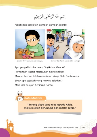 Gambar 10.1 Gusti memecah celengan. Gambar 10.2 Meutia hendak salat ke masjid.