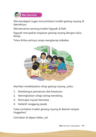 Sila mendapat tugas menceritakan tradisi gotong royong di