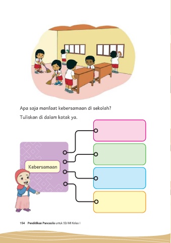 Apa saja manfaat kebersamaan di sekolah? Tuliskan di dalam kotak ya. Kebersamaan 154 Pendidikan Pancasila untuk SD/MI Kelas I