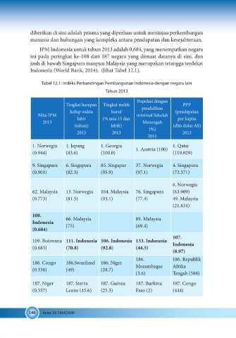 Tabel 12.1: Indeks Perbandingan Pembangunan Indonesia dengan negara lain