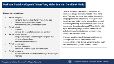 Penggalan dari Naskah Akademik Profil Pelajar Pancasila Kementerian Pendidikan, Kebudayaan, Riset dan Teknologi