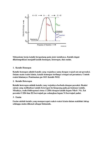 Mekanisme kerja katalis bergantung pada jenis katalisnya. Katalis dapat