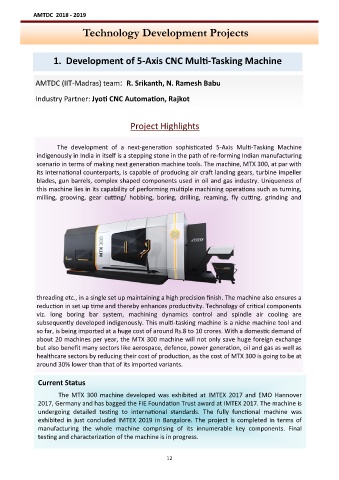 subsequently developed indigenously. This multi-tasking machine is a niche machine tool and