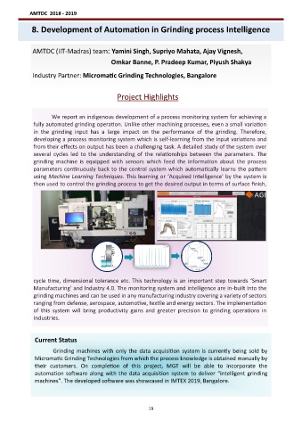 Industry Partner: Micromatic Grinding Technologies, Bangalore