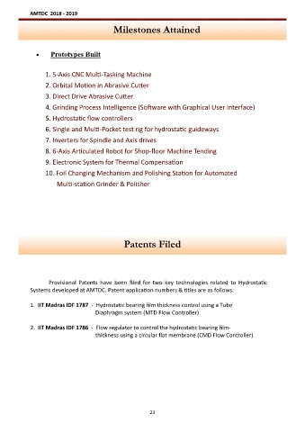 Systems developed at AMTDC. Patent application numbers & titles are as follows: