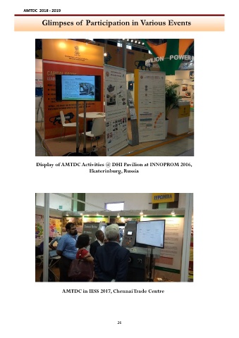 AMTDC 2018 - 2019 Glimpses of Participation in Various Events Display of AMTDC Activities @ DHI Pavilion at INNOPROM 2016, Ekaterinburg, Russia AMTDC in IESS 2017, Chennai Trade Centre 26