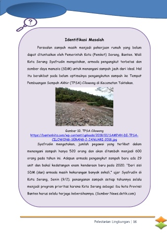 Pembuangan Sampah Akhir (TPSA) Cilowong di Kecamatan Taktakan.