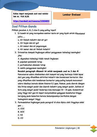 Kalian dapat menjawab soal-soal melalui Lembar Evaluasi