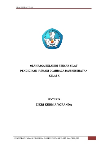 Modul PJOK Kelas X KD 3.4 OLAHRAGA BELADIRI PENCAK SILAT PENDIDIKAN JASMANI OLAHRAGA DAN KESEHATAN KELAS X PENYUSUN ZIKRI KURNIA YORANDA PENDIDIKAN JASMANI OLAHRAGA DAN KESEHATAN KELAS X SMA/SMK/MA I