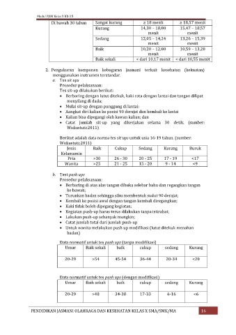 Berikut adalah data norma tes sit ups untuk usia 16-19 tahun. (sumber: