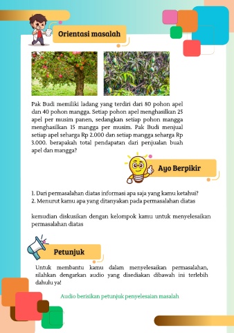dan 40 pohon mangga. Setiap pohon apel menghasilkan 25