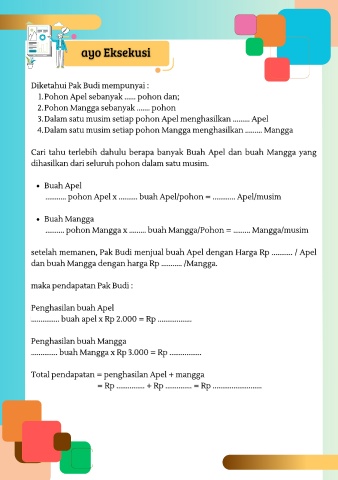 .............. buah Mangga x Rp 3.000 = Rp ................. .