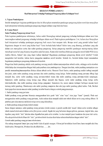 Setelah mempelajari kegiatan pembelajaran dua ini diharapkan menemukan pandangan pengarang dalam novel dan menyajikan