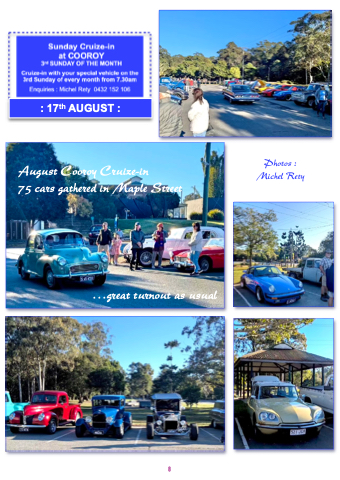 : 17th AUGUST : August Cooroy Cruize-in 75 cars gathered in Maple Street …great turnout as usual 8 Photos : Michel Rety