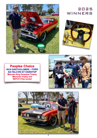 2025 WINNERS Peoples Choice RICK BARTHOLOMEW – FORD XA FALCON GT HARDTOP Malcolm King Perpetual Trophy, Memento Trophy and REPCO Prize bucket 5