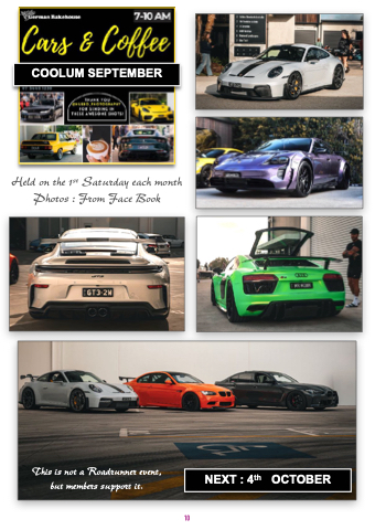 COOLUM SEPTEMBER Held on the 1st Saturday each month Photos : From Face Book This is not a Roadrunner event, but members support it. NEXT : 4th OCTOBER 10