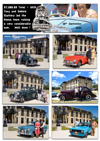 $7,888.88 Total – 2025 Tony and Debbie Slattery led the Noosa team raising a very considerable t sum. Well done ! 28th September 2025 Photos : Tony Slattery Photo : Noel St J-W 14