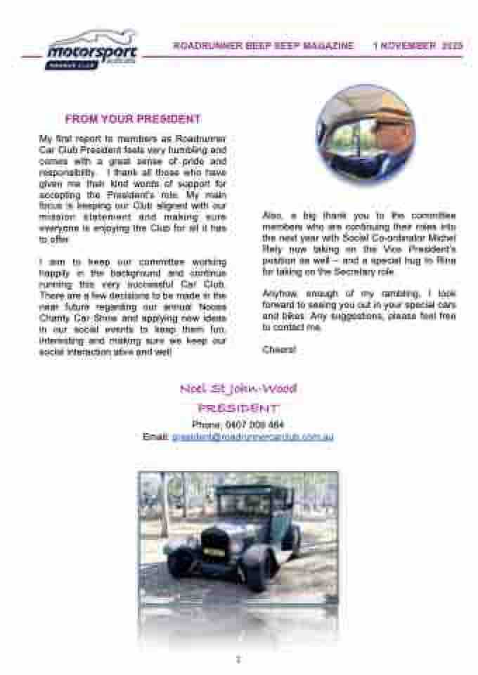 Email: president@roadrunnercarclub.com.au