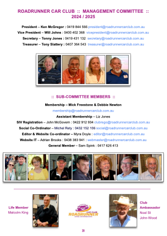 Social Co-Ordinator – Michel Rety : 0432 152 106 social@roadrunnercarclub.com.au